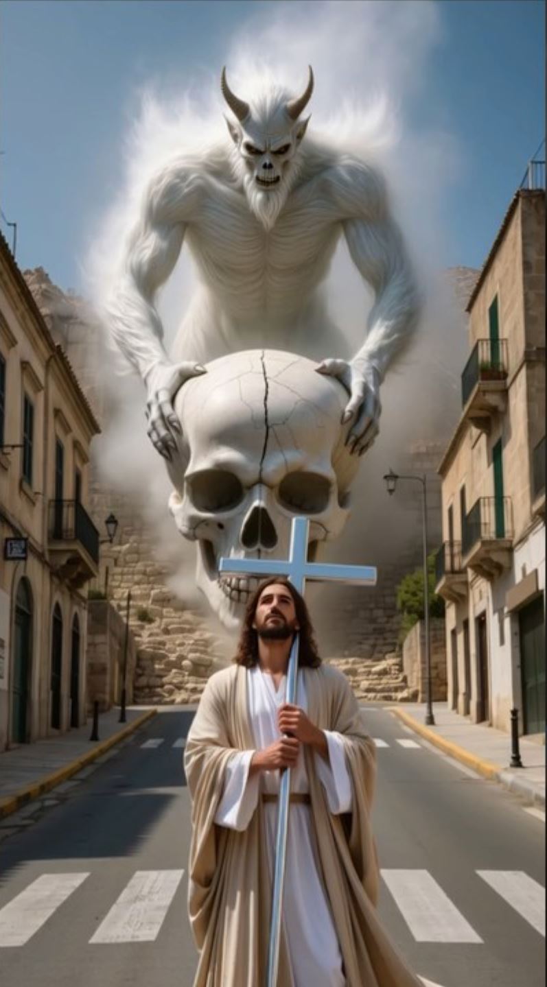 Divine Strike: Jesus Defeats the Horned Demon”