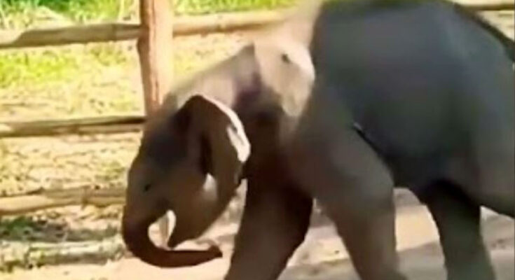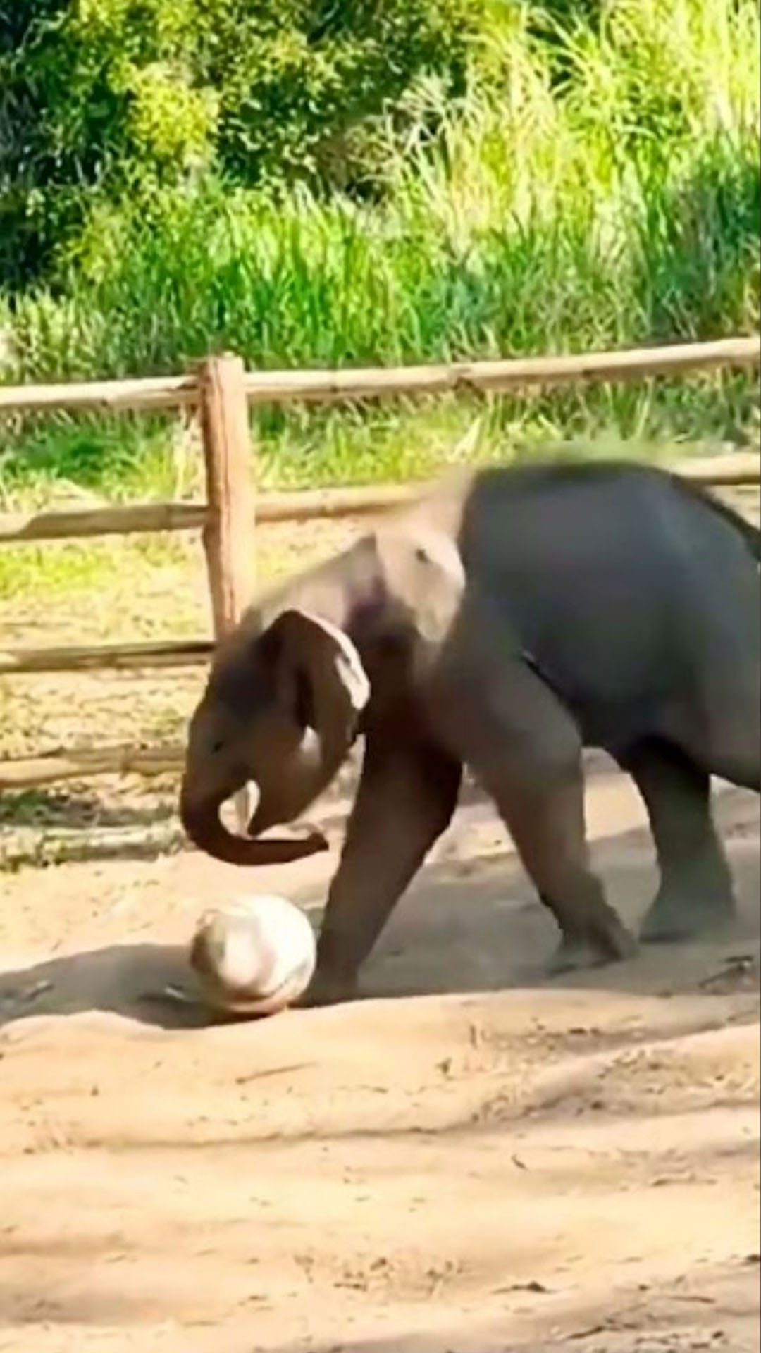 Adorable Baby Elephant Plays with Ball Using Trunk😁