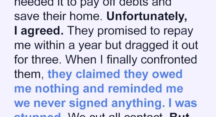 I felt like the floor had dropped out under me. Not just because of the money, but because of the betrayal. My own sister—someone I grew up protecting—was now pretending a loan was a gift.
